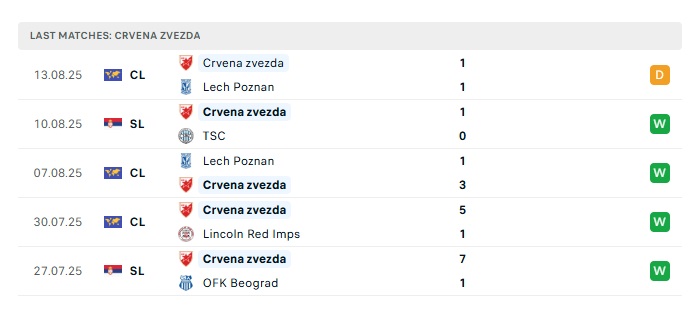 - Phong độ gần đây Crvena Zvezda