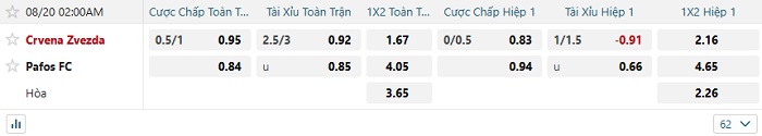 Soi kèo châu Á, kèo Crvena Zvezda vs Pafos