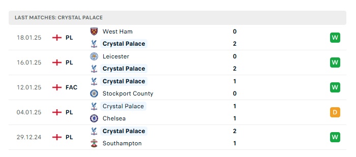 - Phong độ gần đây Crystal Palace