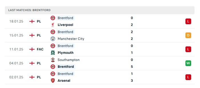 - Phong độ gần đây Brentford