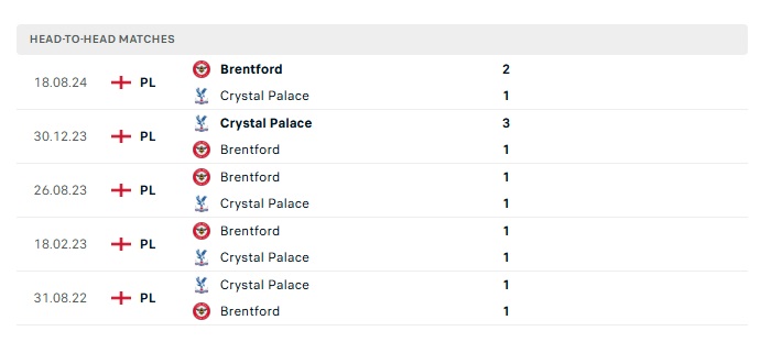 Phong độ gần đây Crystal Palace vs Brentford