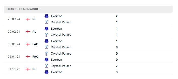 - Kèo tỷ số H2 Crystal Palace vs Everton: 0-0