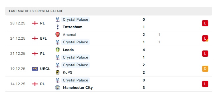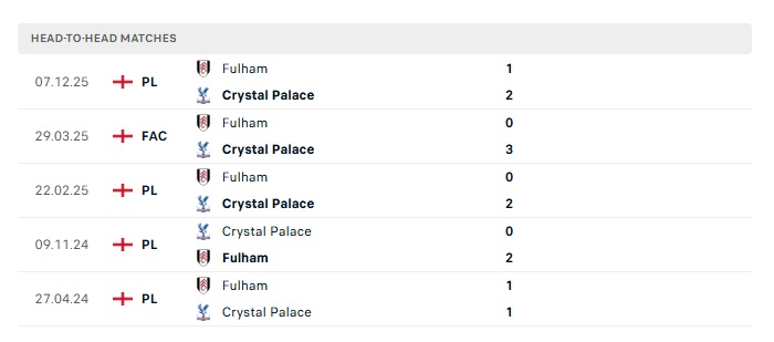 Lịch sử đối đầu Crystal Palace vs Fulham