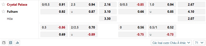 Soi kèo châu Á, kèo Crystal Palace vs Fulham