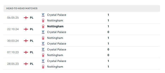Lịch sử đối đầu Crystal Palace vs Nottingham Forest