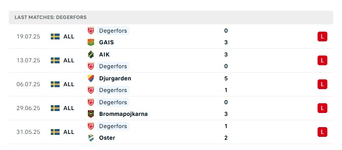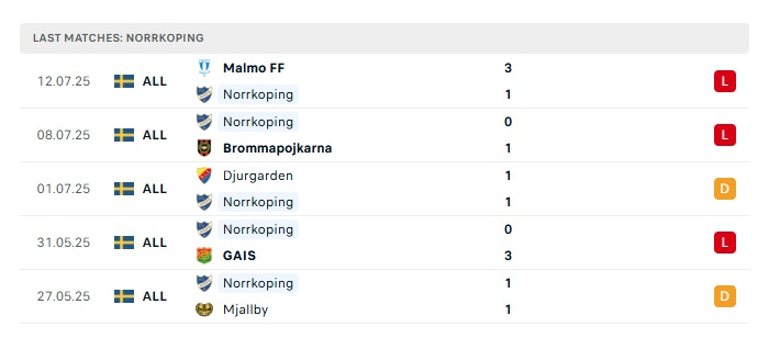 Phong độ gần đây Degerfors IF vs Norrkoping