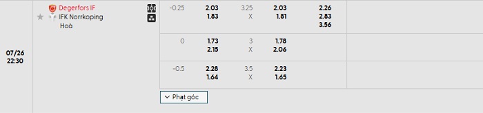 - Kèo tỷ số H2 Degerfors IF vs Norrkoping: 1-1