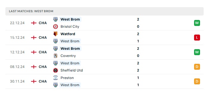 - Phong độ gần đây West Brom