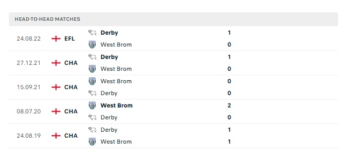 Phong độ gần đây Derby vs West Brom