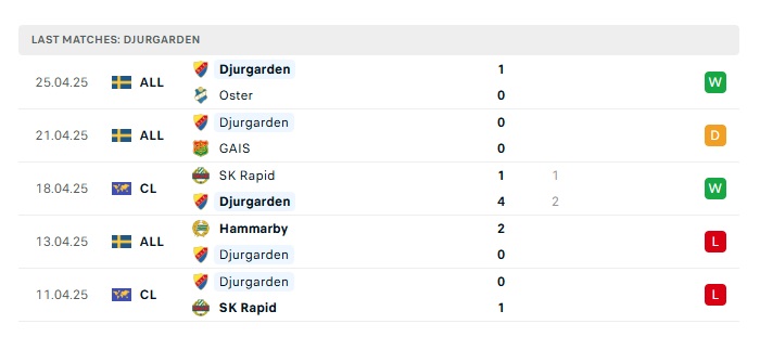 - Phong độ gần đây Djurgarden