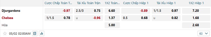 Bảng tỷ lệ kèo bóng đá hôm nay Djurgarden vs Chelsea