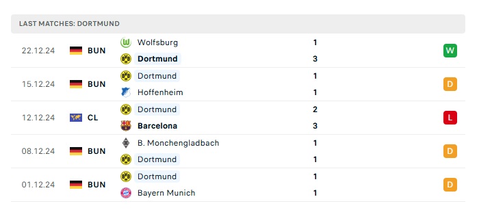 Phong độ gần đây Dortmund vs Bayer Leverkusen