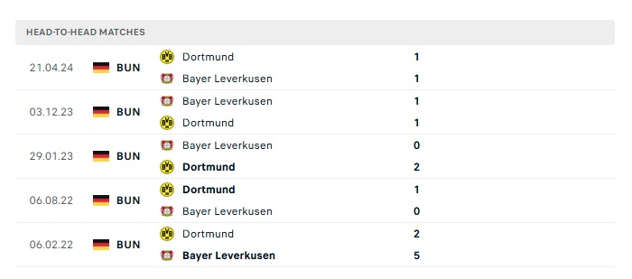 Lịch sử đối đầu Dortmund vs Bayer Leverkusen