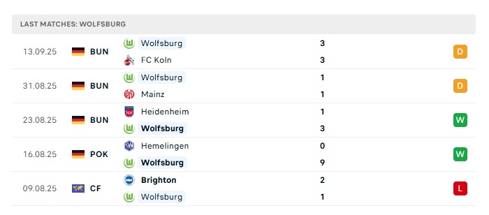 - Phong độ gần đây Wolfsburg