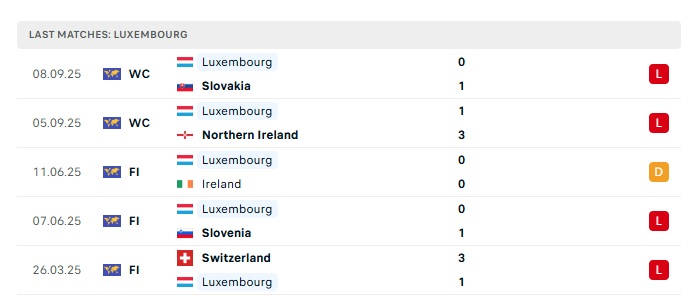 Luxembourg: Moris; Jans, Selimovic, Mahmutovic, Carlson; Olesen, Barreiro; Sanches, Sinani, Bohnert; Dardari.