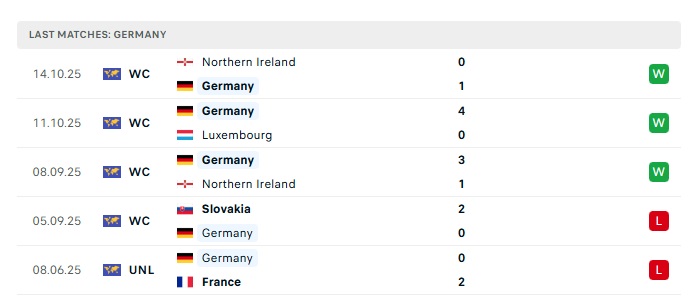 - Phong độ gần đây Đức