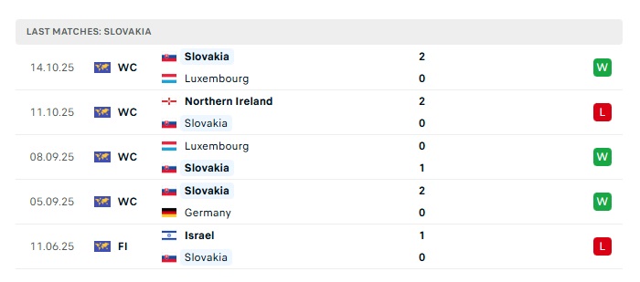 - Phong độ gần đây Slovakia