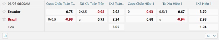 Soi kèo châu Á, kèo Ecuador vs Brazil