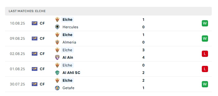 - Phong độ gần đây Elche
