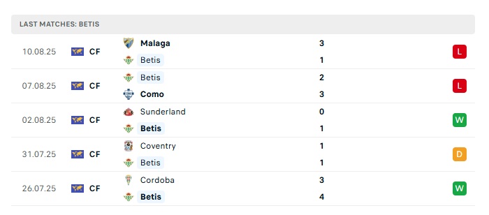 - Phong độ gần đây Betis