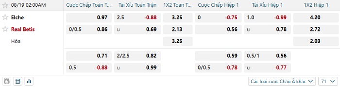 Soi kèo châu Á, kèo Elche vs Betis