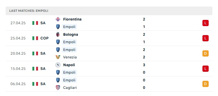 - Phong độ gần đây Empoli