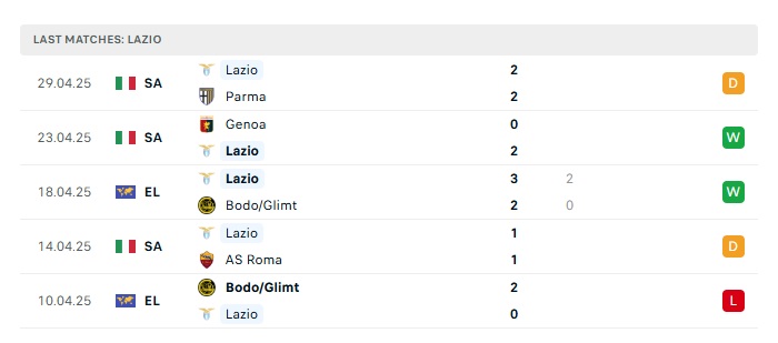 - Phong độ gần đây Lazio