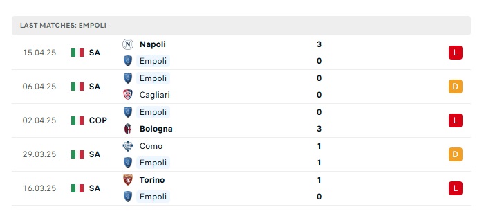 - Phong độ gần đây Empoli