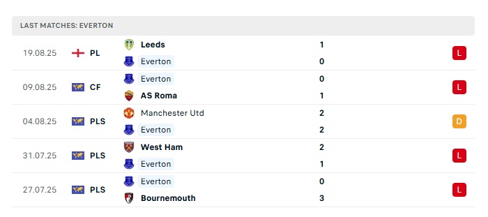 - Phong độ gần đây Everton