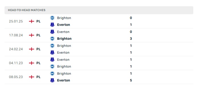 Lịch sử đối đầu Everton vs Brighton