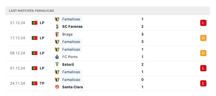 - Phong độ gần đây Famalicao
