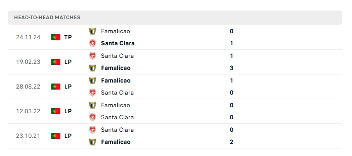 Lịch sử đối đầu Famalicao vs Santa Clara