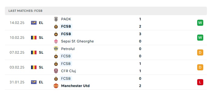 Phong độ gần đây FCSB vs PAOK