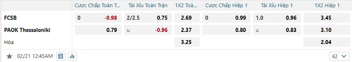 - Kèo tỷ số H2 FCSB vs PAOK: 0-0