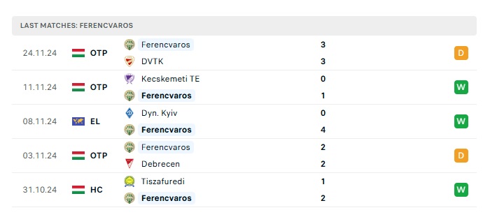 - Phong độ gần đây Ferencvaros