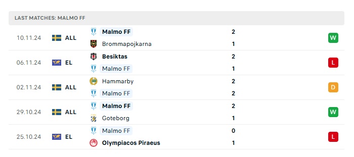 - Phong độ gần đây Malmo