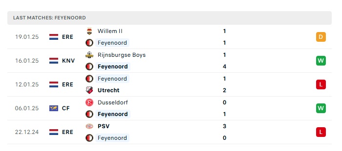 - Phong độ gần đây Feyenoord