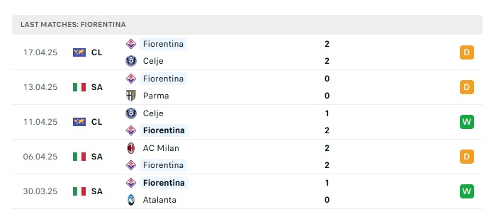 - Phong độ gần đây Fiorentina