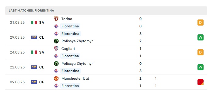 Fiorentina: De Gea; Comuzzo, Pongracic, Ranieri; Dodo, Fagioli, Sohm, Mandragora, Gosens; Piccoli, Kean.