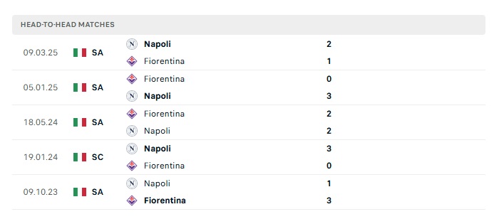 - Kèo tỷ số H2 Fiorentina vs Napoli: 0-1