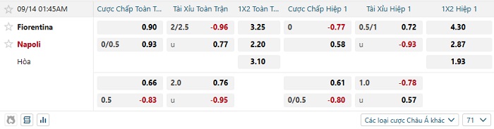 Soi kèo châu Á, kèo Fiorentina vs Napoli