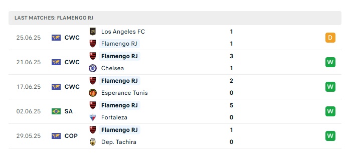 - Phong độ gần đây Flamengo