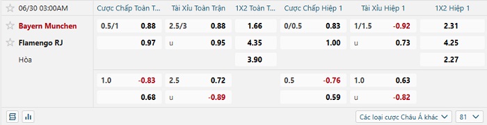 Soi kèo châu Á, kèo Flamengo vs Bayern Munich