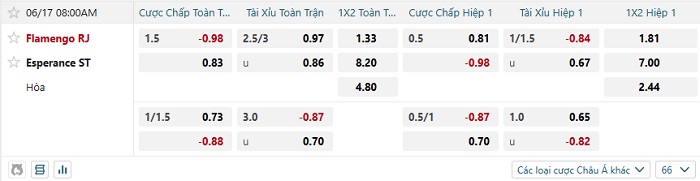 Bảng tỷ lệ kèo bóng đá Flamengo vs Esperanse ST
