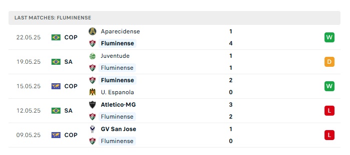 - Phong độ gần đây Fluminense