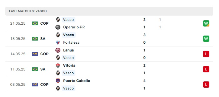 - Phong độ gần đây Vasco da Gama