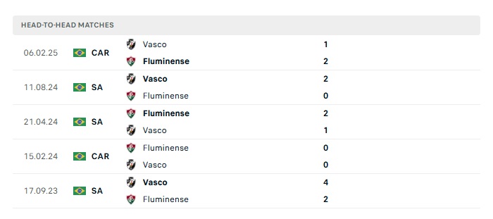 Phong độ gần đây Fluminense vs Vasco da Gama