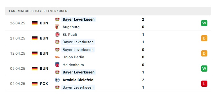 Phong độ gần đây Freiburg vs Bayer Leverkusen
