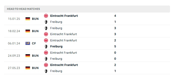 Lịch sử đối đầu Freiburg vs Ein.Frankfurt