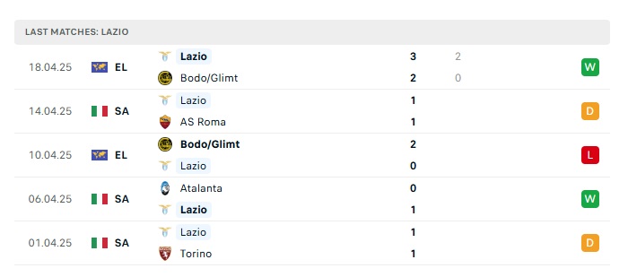 - Phong độ gần đây Lazio